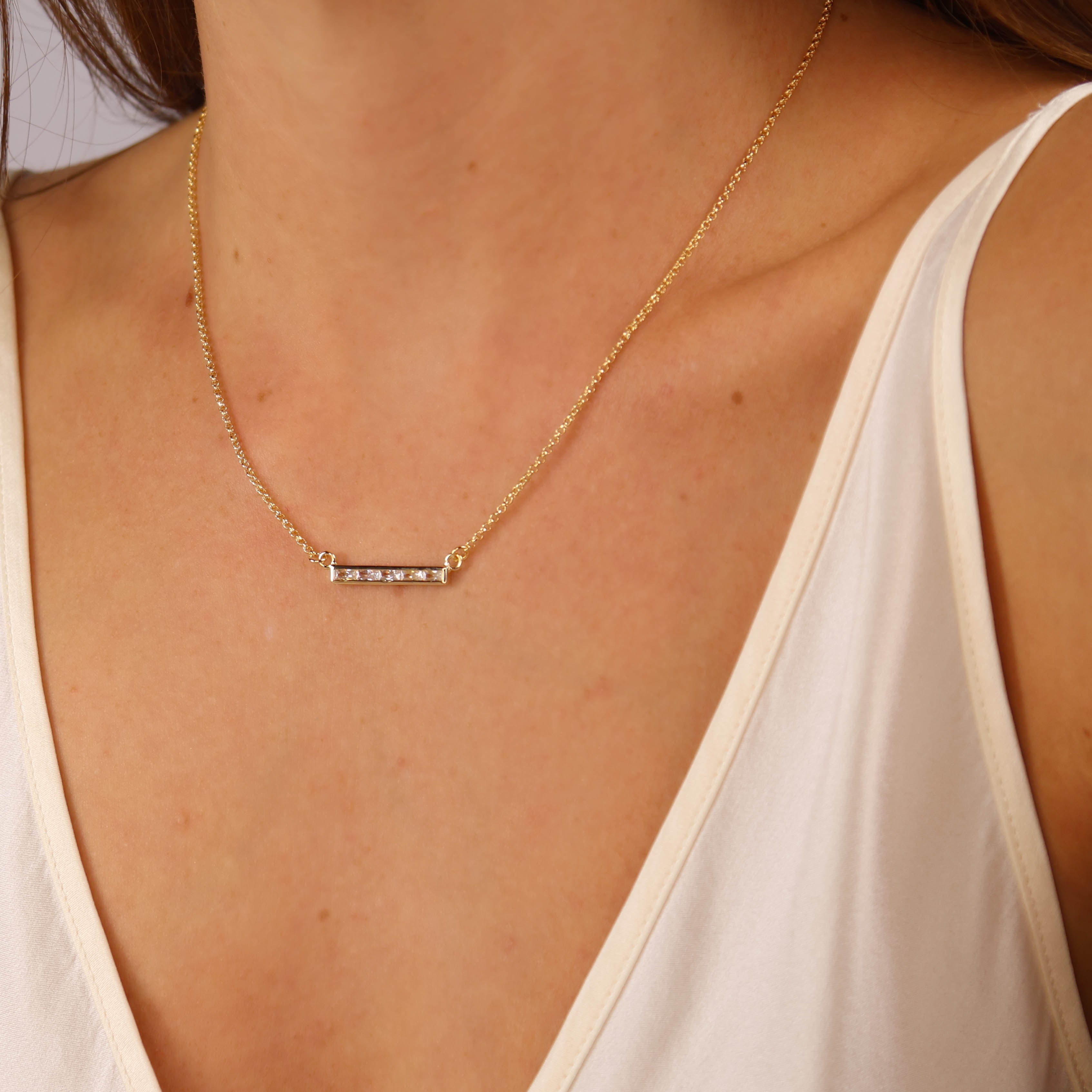 Baguette CZ Bar Necklace
